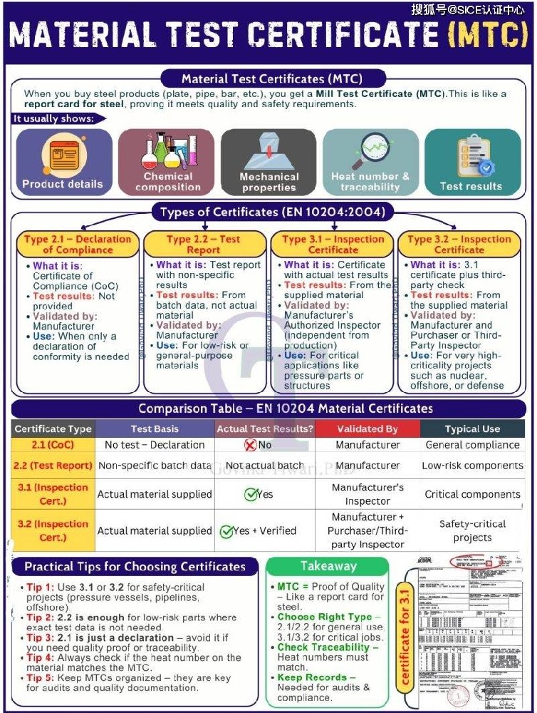 🧪 MTC 与钢材产品(板材、管材、棒材等)一起发放,以证明它们符合质量和安全要求。