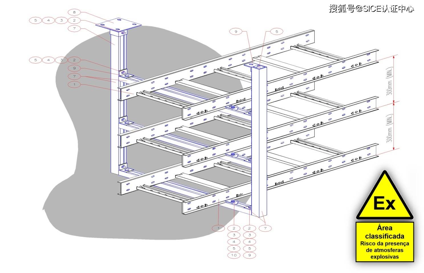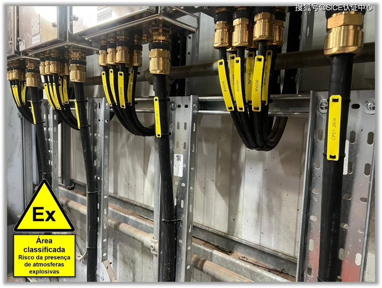 电缆布线和分配系统通过电缆桥架和电缆导管安装,电缆通过电缆压接“Ex”装置进入易燃气体或可燃性粉尘危险区域。规范 ABNT NBR IEC 60079-14