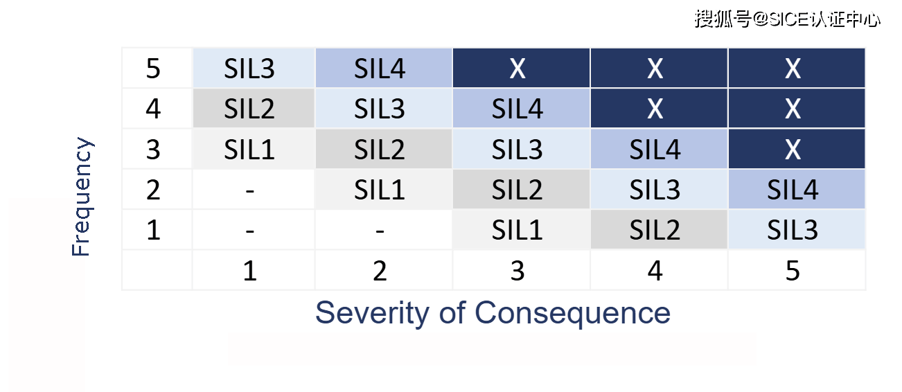国际安全标准使用三区风险模型来确定何时需要SIL: