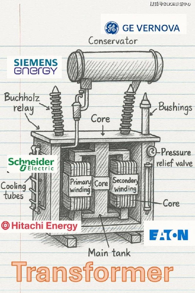 ●配电变压器:用于将输电系统的高压降压到适合配电到家庭和企业的低压。