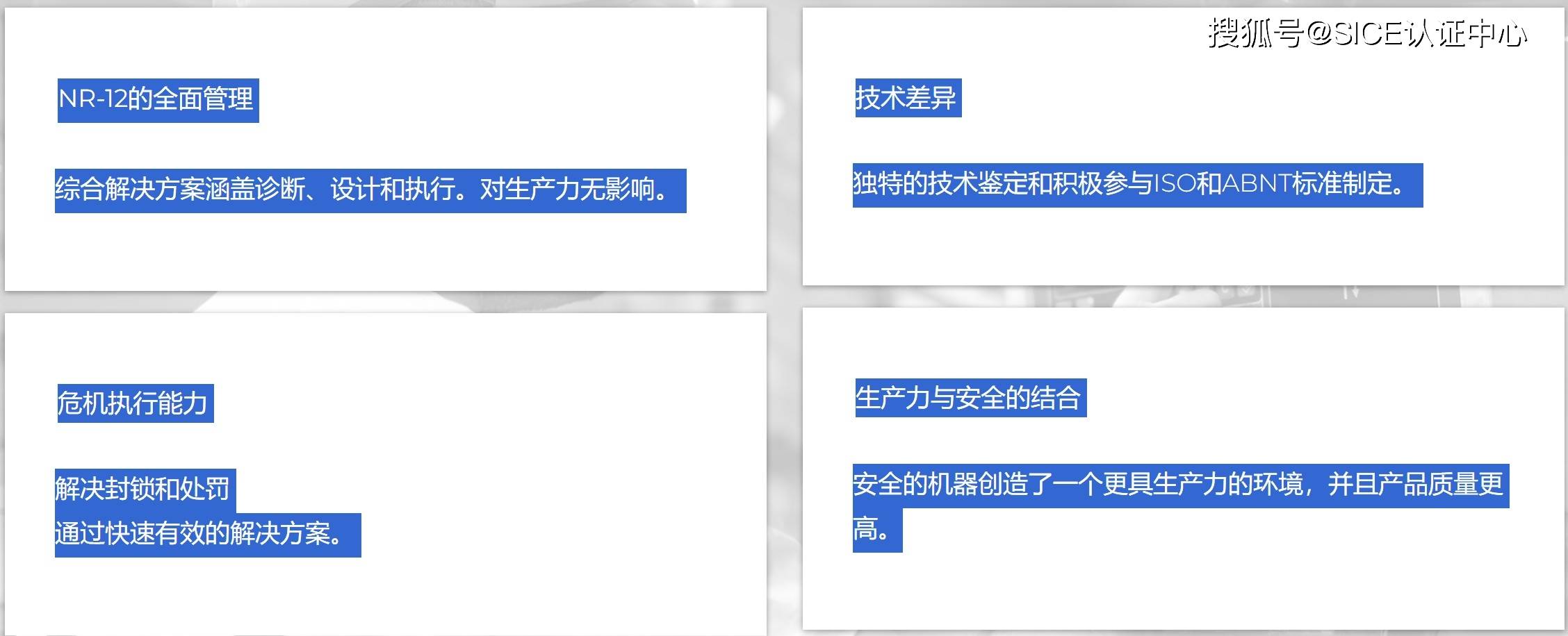 SICE的多学科团队整合了所有工程领域,为NR-12整个生命周期提供最强大的机器和设备安全解决方案。